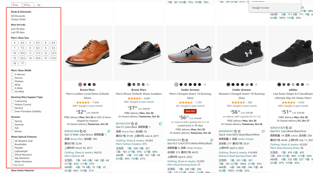 關鍵屬性位置:搜索結(jié)果頁的最左側(cè)、Listing頁面中,如下圖這些屬性。